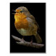 Een vrolijk roodborstje zit op een kale tak, zijn hart zingt uit..