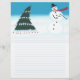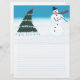 Het schilderen van een kerstboom en een sneeuwman die danst in de sneeuw is het grote ontwerp op een aangepaste letterkop.