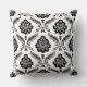 A vintage style decorative damask surface pattern influenced by rococo classical design in black and grey details on a white background.