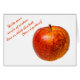 Rode appel wenskaart. De appel heeft veel symbolen, maar laten we ons houden aan de symbolen liefde, leven en gezondheid. U kunt het afbeelding en de tekst van de sjabloon op de voorzijde en de tekst van de sjabloon binnen de kaart veranderen of schrappen. U kunt twee verschillende teksten schrijven maar met dezelfde handtekening.