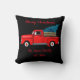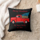 Fijne vakantie! Fun red pick-up met de kerstboom van de familie klaar om naar huis te gaan om het seizoen te vieren!