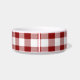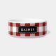 Stijlvolle, moderne gezelschapsbowl met een rustig rood en wit buffel controlepatroon en klassiek naammonogram. Pas het aan met de naam van uw huisdier of een andere tekst. Klik aanpassen het om het even welke achtergrondkleur te kiezen, de doopvonten en de kleuren van de veranderingstekst, uw eigen foto's toe te voegen en één van een soort ontwerp te creëer!