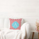 Rode en witte Chevron Stripes Blue Monogram Pillow.