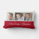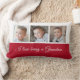 Cadeauidee, foto-collage kussen. Voeg uw eigen foto's aan dit Sierkussen, Lumbar Pillow, kussen toe en verander de tekst als u verkiest. Zes foto's staan op deze kussen, drie aan de voorkant en nog drie aan de achterkant. In de getoonde steekproef is de formulering "Ik hou van grootmoeder zijn" hetzelfde voor- en achteraan, maar u hebt de mogelijkheid om beide naar eigen keuze te wijzigen. Rood en wit met witte tekst.