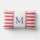 Dit preppy monogram kussen heeft nautische rode en witte strepen met een rand van marineblauw. Personaliseer het bijpassende rode en blauwe monogram met uw keuze van initiaal. Geweldig voor housewarming en slaapkamercadeaus.
