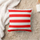Een werpkussens met een rood en wit gestreept patroon. Pas de rode kleur, de patroongrootte onder andere opties aan.