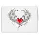 Artisticaal geschilderd rood hart met engelenvleugels grijs, versierd met zwarte gladde contour.
