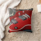 een foto van een rode halfholle elektrische zeskoordgitaar met witte binding die boven op een zwarte acht bij een gig ligt. Voeg uw eigen douanetekst voor een douanemuzikaal ontwerp toe, of gebruikte deze grote gitaarfoto zoals is!