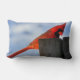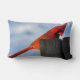Een lumbaal kussen met een foto van een rode kardinaal die op een houten stronk staat.