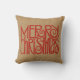 Cute 'MERRY CHRISTMAS' citaat tekst geschreven in kalligrafie letters op faux Jute Burlap textiel texture Patroon. Beschikbaar op een aantal moderne buitenshuis gedecoreerde accenten en mode geïnspireerde accessoires voor het versieren van uw veranda, geduld, pooldek of achtertuin in uw strandhuis, landhuisje, logcabine, meerdepot of riviervakantiehuis.