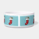 Rode kerstkaarten op blauw met aangepaste tekst voerbakje
