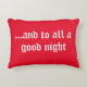 holly berry red worpen kussen met "...en tot een hele goede nacht" op het in een sneeuwwit mooi script. We hebben dit ontwerp ook in Christmasy green met sneeuwwitte letters. Woorden kunnen worden gewijzigd in je eigen woorden als je dat wilt. Deze is opgezet in wasbare katoen, maar er zijn andere stoffen met verschillende prijzen.