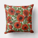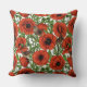 Rode klaprozen en wratten, groene bladeren op wit kussen