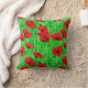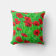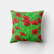 Kussen in een semi-abstract, waterverf patroon van rode papavers in een veld, tegen groene stengels en bladeren