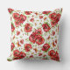 Rode klaprozen met groen gebladerte op witte achte kussen