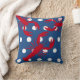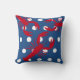 Een rode kreeft met witte stippen en marineblauwe achtergrond op een worp / toss kussen voor een nautisch thema huis, apt, condo, zomer of strand / kust huis