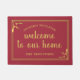 Voeg je familienaam toe aan deze feestelijke rode en gouden deurmat met mistletoe details.