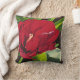 Rode pioenroos bloem met groene bladeren, vierkant kussen