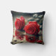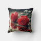 Twee levendige rode rozen met regendruppels op hun bloemblaadjes die op een natte stoep in de regen liggen