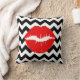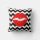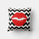 Heldere rode, gepuckerde lippen tegen zwart-wit chevron- of zigzagpatroon.