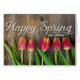 happy spring groet op hout met rode tulpen