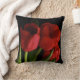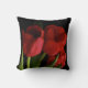 Deze prachtige gooiende kussen bevatten een boeket van rode rode tulpen en groene bladeren die op een zuivere zwarte achtergrond zijn geplaatst. Het afbeelding wordt op de achterkant herhaald.