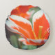 Rond kussen met een bloemthema met een foto van een lentetuin. We zien grote rode tulpen op een donkergroene achtergrond. Geef een vleugje natuurlijke schoonheid aan je leefruimte, voeg een charmant accent toe aan je interieur of vind een stijlvol cadeau voor een speciale gelegenheid!