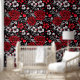 Rode, zwarte en witte bloemige rozen en hartjes romantisch schil- en plakbehang.