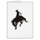 Silhouette noire et blanche d'un cowboy rodéo en plein air sur une selle en bronc.