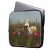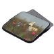 Op een slechte ochtend staat een jong hert in een bloeiende weide, bijna verborgen door het gras en de bloemen.