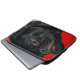 Zwarte hond rode achtergrond dierlijke portret foto foto foto foto foto