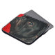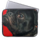 Fotografie Zwarte hond rode achtergrond dierlijke portret fotografie