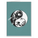 We hebben een prachtig scrollend yin & yang-symbool gemaakt in zwart-wit, groen en wit, oorrijk blauw en groen gepatterd design. Het ziet er geweldig uit op visitekaartjes, vliegers, overhemden...noem maar op. Zoals altijd, personaliseer met uw eigen bericht.