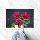 Groet uw bezoekers met deze aangepaste deurmat met een close-up afbeelding van miniatuur rode rozen tegen een verduisterde achtergrond. "Welkom" wordt toegevoegd in grote, gemakkelijk te lezen, rode letters om aan de bloemen te voldoen. De mat meet 24 "x 36" en heeft een gladde viltvoorkant en antislip latexachterkant. Het heeft ook een versterkte rand om rafelen te weerstaan en is zowel fade & meeldauw bestendig. Ideaal voor overdekte toegangen zoals veranda's, appartementen, kantoren, appartementen, appartementen, etc. Neem gerust contact met mij op via Zazzle als u vragen heeft over deze mat of als u wilt helpen bij het overbrengen van dit ontwerp naar een ander item. Ik ben blij om te helpen om ervoor te zorgen dat het ontwerp correct past.