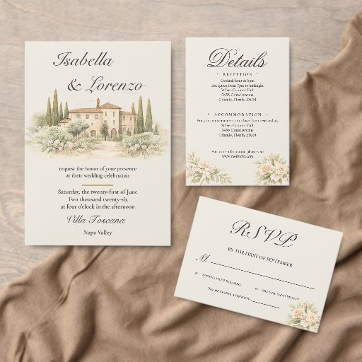 Romantic Italian Tuscan Villa Wedding InvitationsConçu par Phyllis Waugh