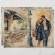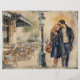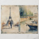 Romantische Parisienne Junk Journal pagina. Met verschillende kunstwerken aan beide zijden, die de levensstijl van Parijs weergeven, met romantische koppels, café, rivier- en Eiffeltoren scènes. Met een gevoel. Voor uw junk journaling en scrapbooking projecten.