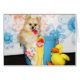Een kaartje met een pommeraanse poodie in een wasemmer.