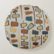 Een schattig midden-eeuws geïnspireerd rond kussen, met een geometrisch patroon in warme retro-kleuren van bruin, sinaasappel, blauw en groen. Perfecte aanvulling op elke kamer met een modern of eclectisch ontwerp. *Al mijn design zijn mijn eigen originele illustraties en kunst, dus onderworpen aan auteursrechtelijke bescherming. _________________________________________________