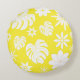 Een wit bloemontwerp zit op een heldere zonnige gele achtergrond.