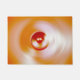 Rode draaiende muziekluidspreker op een gele achtergrond