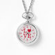 Ketting Horloge cadeau. Met het woord 'love' en een hartvorm ter vervanging van de letter O. Rood en grijs.