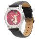 Hier is het perfecte horloge voor een meisje of vrouw in een cheerteam! Het beschikt over een glanzend gouden silhouet cheerleader met pom poms. Het afbeelding wordt geplaatst op een helling rode achtergrond die bijna schijnt te gloeien met kleur. Haar naam staat linksboven, met overeenkomende gouden nummers op de 12, 3, 6 en 9 posities. Prachtig!
