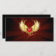 Helderrood hart van een engel met gouden vleugels die schijnen in de donkere stralende rode achtergrond versierd met een patroon.