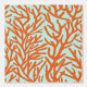 Een waterverf van een sterk rif van rood koraal met realistische grove randen met een aqua blue Caribbean zee. Onderdeel van het Coastal collectie door cheriedesues_studio.