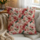 Een levendig rood hibiscus waterverf bloemmotief op een zacht roze achtergrond.