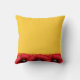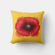Een rode klaproos op een geel kussen. Het heeft een dubbele zijde met een papaverpatroon aan de achterkant