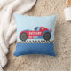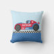Een gooikussens met een afbeelding van een bestuurder in een rode, blauwe en witte raceauto met witte decoratieve sterren. Ideaal voor kinderen en jongens slaapkamer als ze van racevoertuigen en snelheid houden! Personaliseer met de naam van het kind aan de zijkant van de auto.