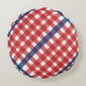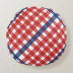 Rood Wit en Blauw Gingham Plaid Rond Kussen