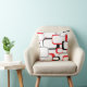 Een cool retro geïnspireerd ontwerp van rode, zwarte en grijze vierkanten tegen een witte achtergrond op een kussen