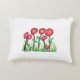 Roodbloemig kussen met de hand beschilderd met gele centra en groene bladeren